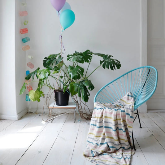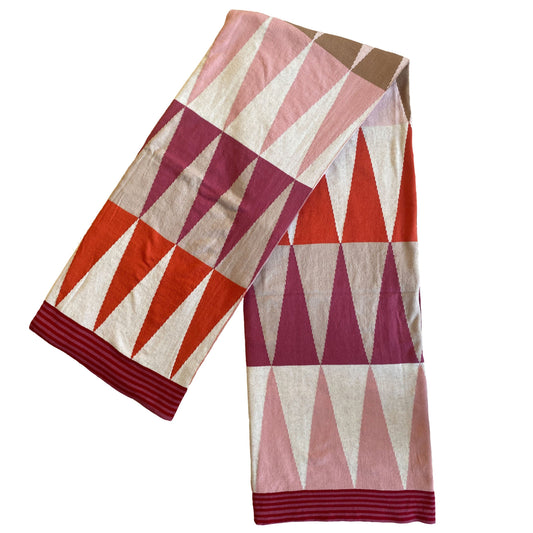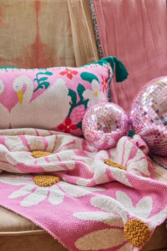 Knitted Blanket in Pink with Embossed Flowers and Green Tassels