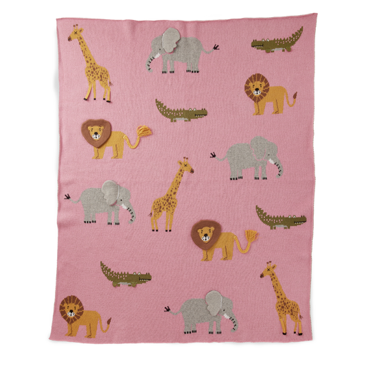 Knitted Baby Blanket in Chocolate Brown with Animals
