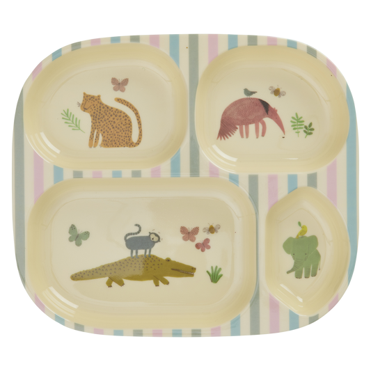 Melamine Kids 4 Room Section Plate - Sweet Jungle Print