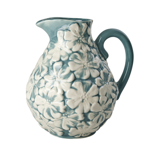 Embossed Flower Ceramic Jug - Green/Blue