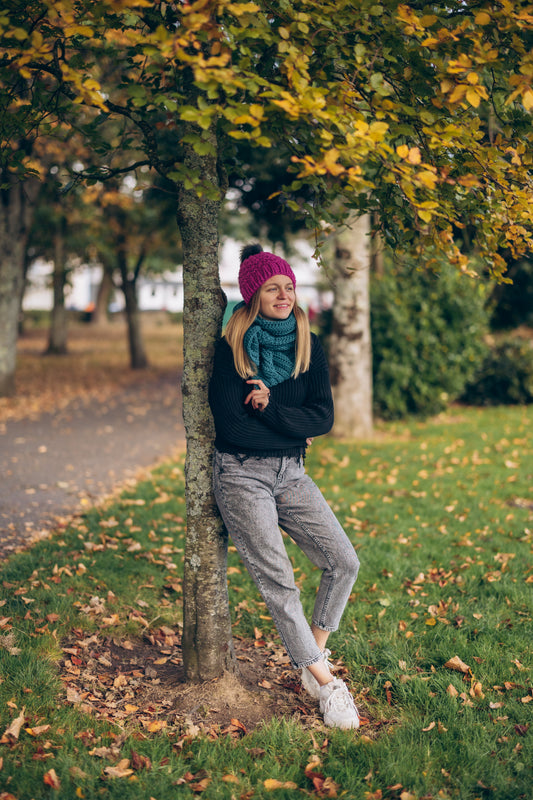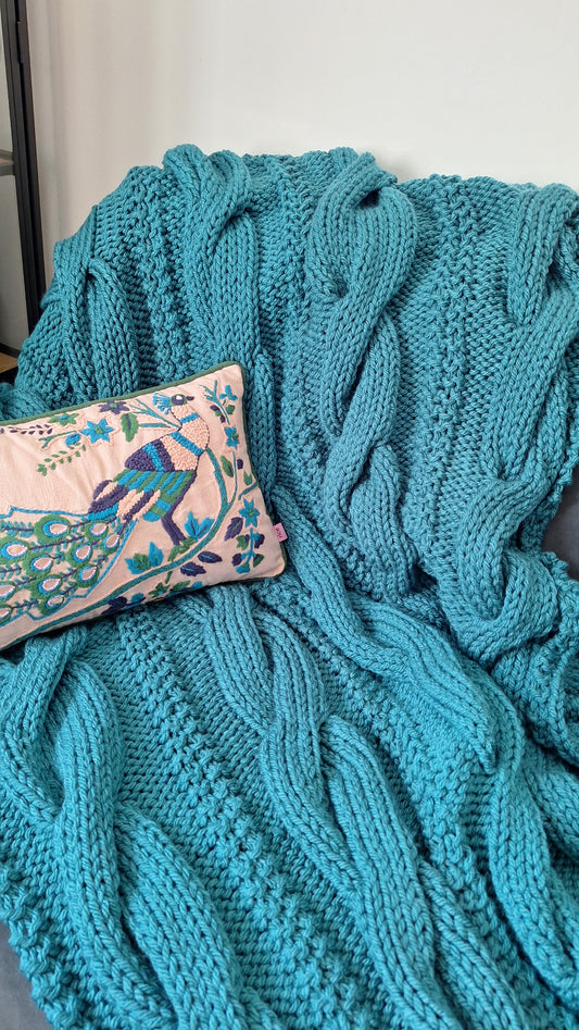 Chunky Cable Knit Blanket - Large - Fuchsia
