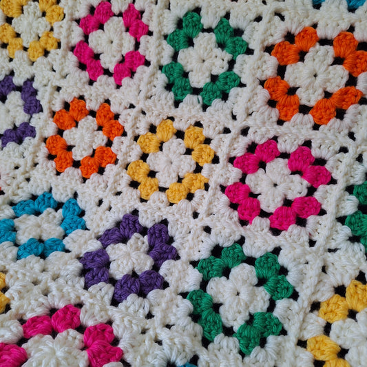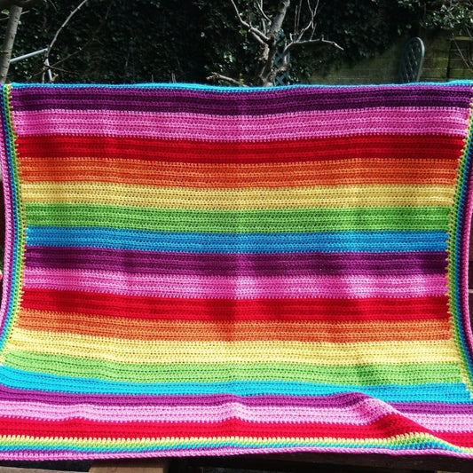 Bright & Bold Random Stripe Granny Stitch Crochet Blanket – Handmade by Denise