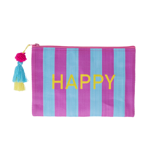 Recycled Plastic Pouch Bag - Happy - Blue and Purple Stripes