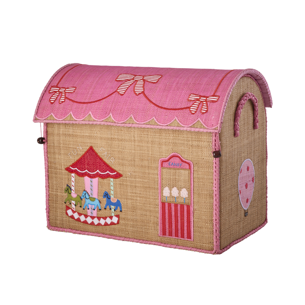 Let’s go to the fair! Our raffia houses with fun fair theme come in three different sizes. They are not only a great addition to playtime, but also the perfect storage for toys, books, blankets, and other things you don’t want to show. So go ahead – hop on the ferris wheel, grab a cotton candy or take a spin on the carrousel.