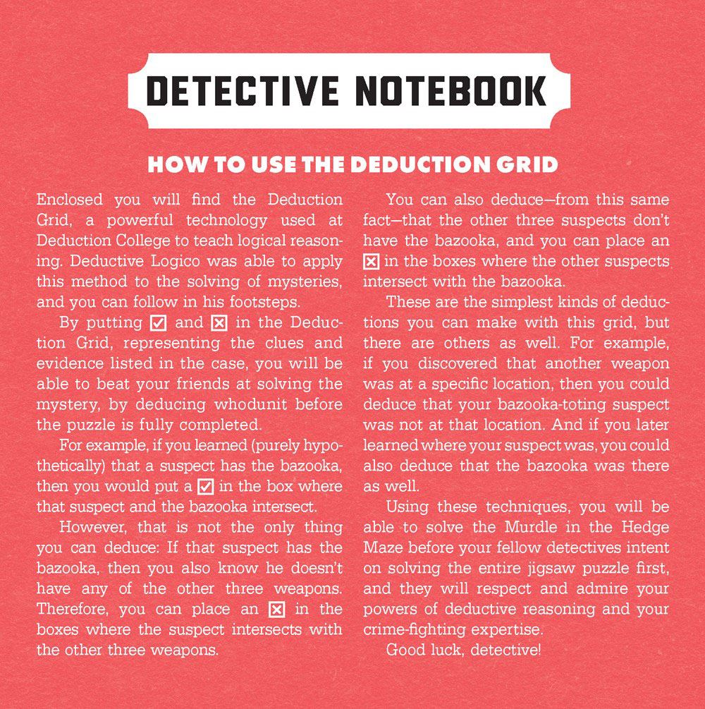 This all-new form of Murdle mystery includes a logic puzzle, a jigsaw and a maze – and you need to solve all three to figure out whodunnit. Build the scene of the crime from the ground up, filling your detective notebook with clues as you go. Solve the mystery solo or play with as many people as you like. Includes 500-piece jigsaw, story, instructions, detective notebook with 25 solving grids, and hint and solution envelope, housed in a 7 x 9 x 2.5-inch box with a hinged lid.