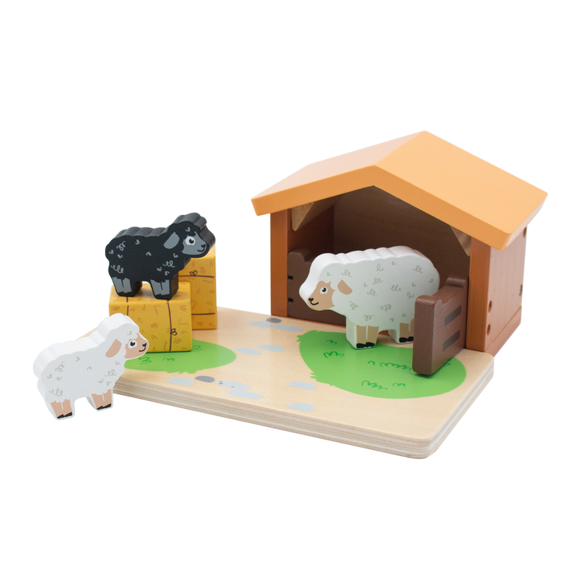 Part of the fabulous Jumini Farm Collection, the Lambing Shed is the perfect addition to Home Farm Barn for any budding young sheep farmers! The set includes a lambing shed, one sheep, 2 lambs and 3 hay bales.